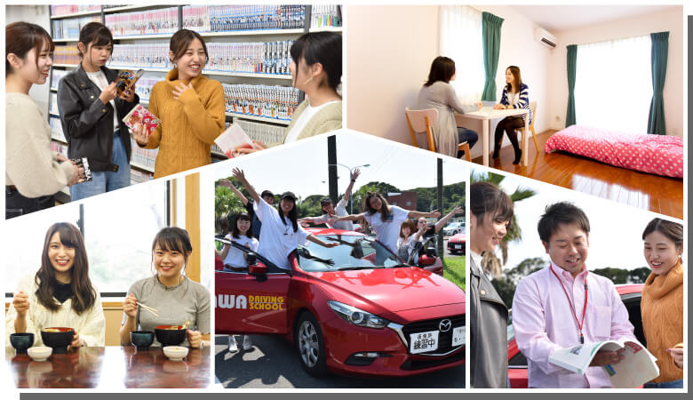 茨城県常陸大宮市にある教習所で、上野駅からJR特急で約80分と乗り換えなしで行ける関東エリアの人気校です。宿泊施設は教習所に隣接しているため、毎日の登校も負担になりません。宿泊する部屋はシングル・ツイン・トリプル・相部屋とバリエーションもさまざまで、好みに合わせて選ぶことができます。女性の方は期間限定となるものの、「エステ割引券」や「教習所近隣の地元人気店ランチご招待」といったうれしい特典が満載です!
