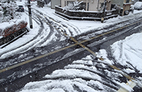 遠心力で車が外側に向かいやすいカーブは、雪の日に運転する際は注意が必要な場所です。